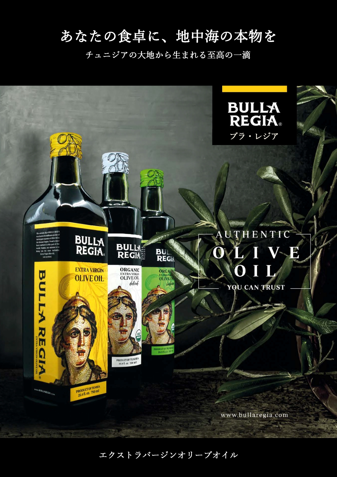 エクストラバージンオリーブオイル チュニジアの大地から生まれる至高の一滴 BULLA REGIA エクストラバージンオリーブオイルは、何世代にもわたり受け継がれてきた伝統と情熱を反映し、チュニジアの大地そのものを表現します。
